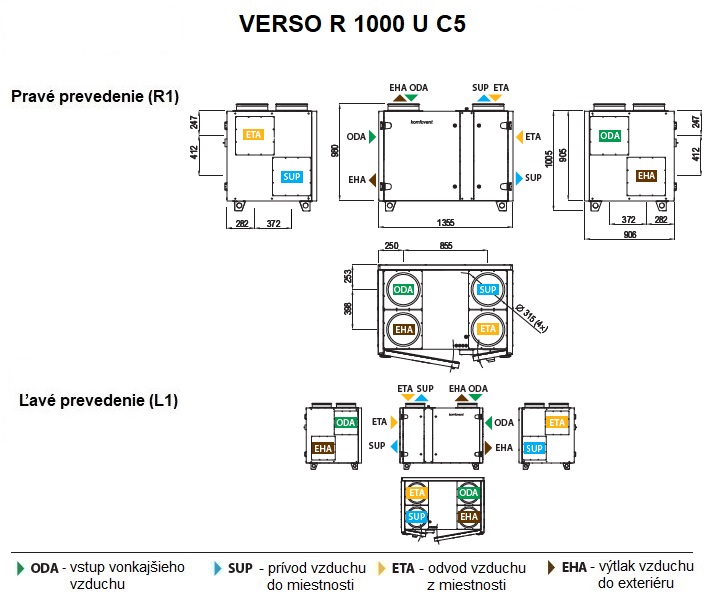 Rekuperačná jednotka Verso R 1000 U/H/V