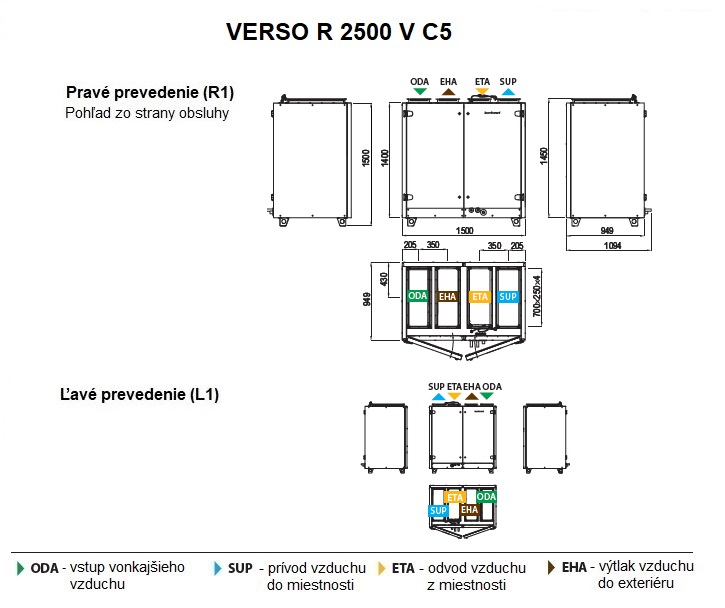 Možnosť nastaviť pre každý režim samostatne objemový prietok prívodného a odvodného vzduchu a tiež aj požadovanú teplotu.