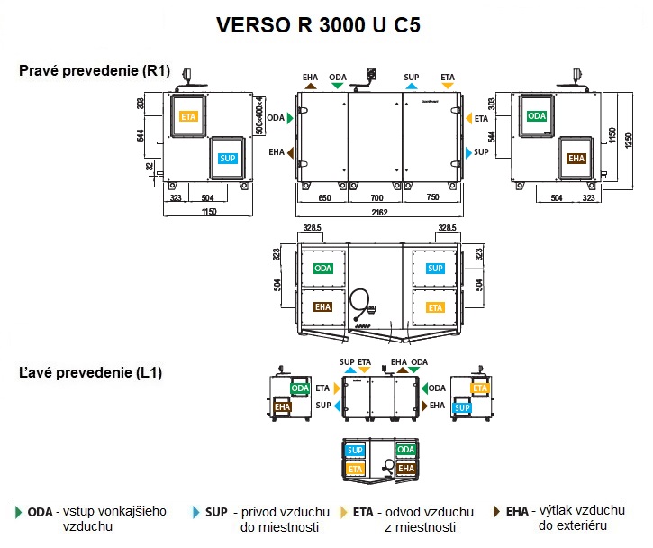 Rekuperačná jednotka Verso R 3000 U/H/V