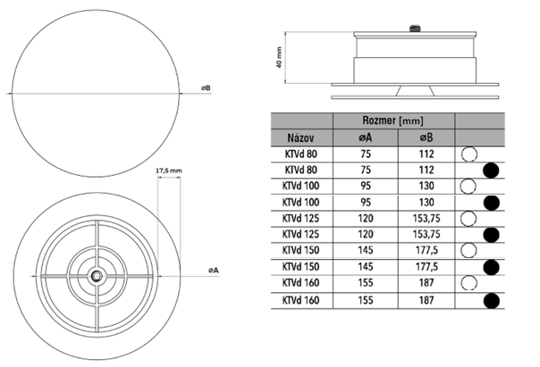 KTVd 160 čierny tanierový ventil plastový (veľký stred) |