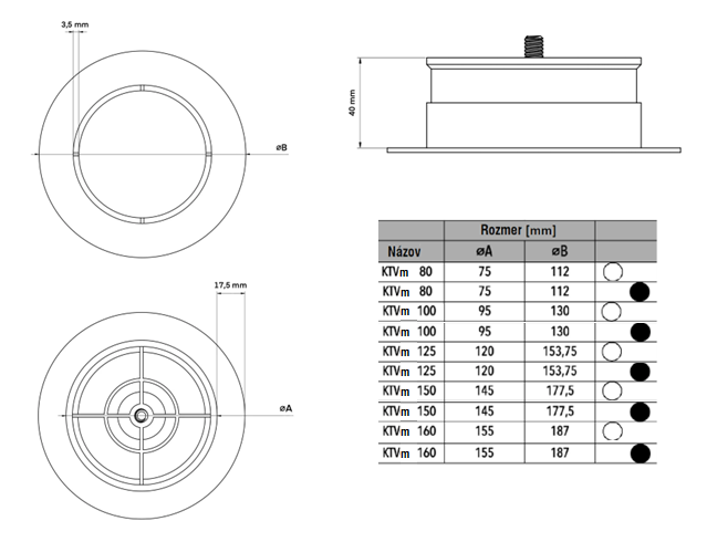 KTVm 160 čierny tanierový ventil plastový (malý stred) |